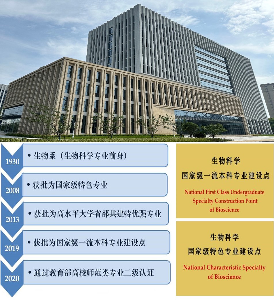 m88官方网站登录地址前身为1928年创建于安庆市的省立安徽大学,生物科学专业源于省立安徽大学1930年创建的生物系,曾经有王志稼、钱啸虎、刘承德、陈壁辉等多位在全国享有盛名的教授在此执教。2008 年获批为国家级特色专业,2013年获批为高水平大学省部共建特优强专业,2019年获批为国家级一流本科专业建设点,2020年通过教育部普通高校师范类专业二级认证。秉承“为人师表,求实创新”的专业理念,坚持“生物学功底扎实、综合素质过硬”的培养方略,培育“知识探究、能力提升、人格养成”三位一体的卓越教师人才。