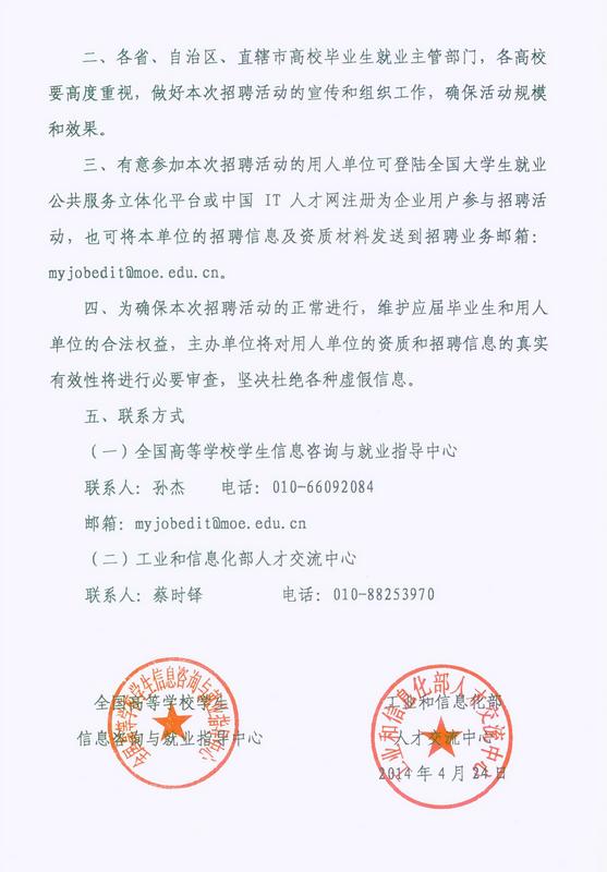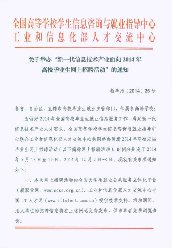 四、关于举办“新一代信息技术产业面向2014年高校毕业生网上招聘活动”的通知