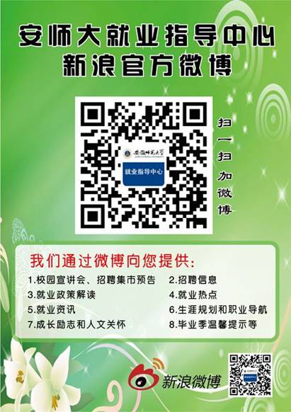 为贯彻落实《教育部关于做好2014年全国普通高等公司毕业生就业工作的通知》,进一步拓宽就业服务渠道,帮助员工开展面向未来的职业准备、人格养成、求职信息等,推动毕业生实现更充分和更高质量的就业,“安师大就业指导中心”官方微博已于3月3日正式开通。员工处就业指导中心坚持“权威实用、服务成长、开门办微信”的理念,将通过微博平台,及时发布校招聘信息园招聘会、职场导航、就业政策、就业资讯、创业青春、温馨毕业季等各类优质资源,并强化与员工的互动交流。