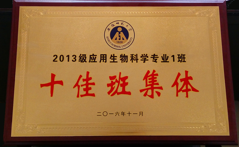 应用生物科学专业2013级1班获2015—2016学年校“十佳班集体”称号