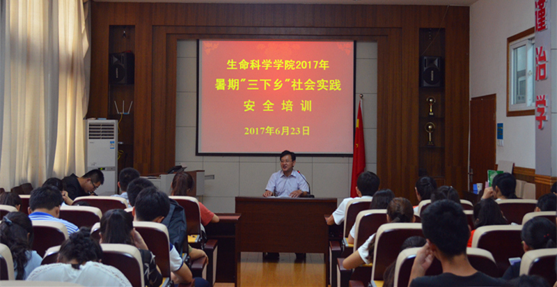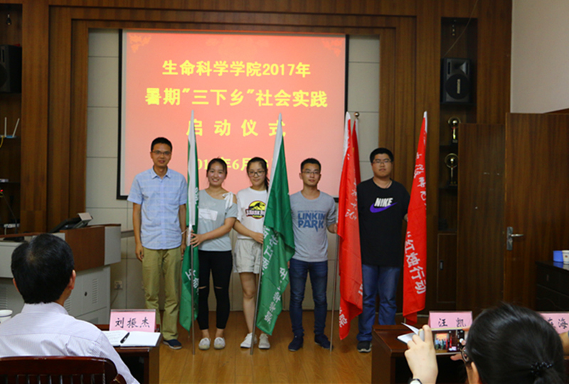 仪式在庄严的团歌声中开始。首先,思政指导教师余在海宣读了生科院2017年校级重点团队名单,并对生科院的暑期社会实践工作给予高度认可。随后,2015级生物科学专业陈兵同学、辅导员王志老师分别代表社会实践队员和指导教师发言。承诺全体队员和指导老师将尽心尽责,全情投入,深入基层,在实践中发现新鲜视角、了解社会变革、检验自身所学,认真完成暑期社会实践活动,不辜负校、院两级领导的支持与信任。