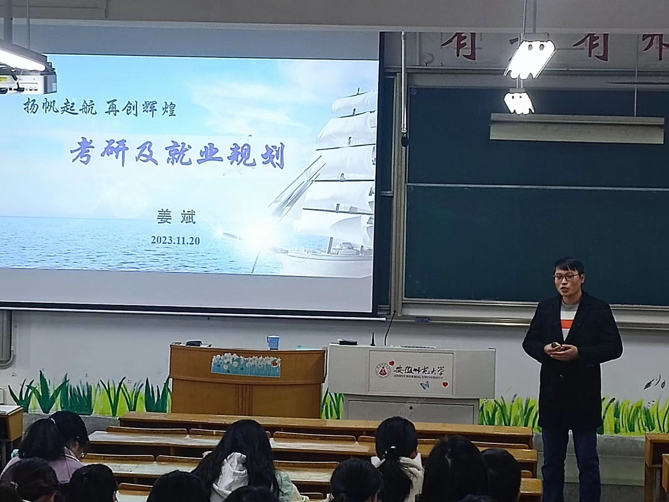 公司辅导员周文娟邀请生物科学(卓越教师班)专业负责人姜斌,开展“扬帆起航,再创辉煌”考研及就业规划指导交流会。11月20日下午15时,交流会于田家炳教学楼8308举行,由周文娟担任主持。21级生物科学专业3班、卓越教师班全体同学参加。