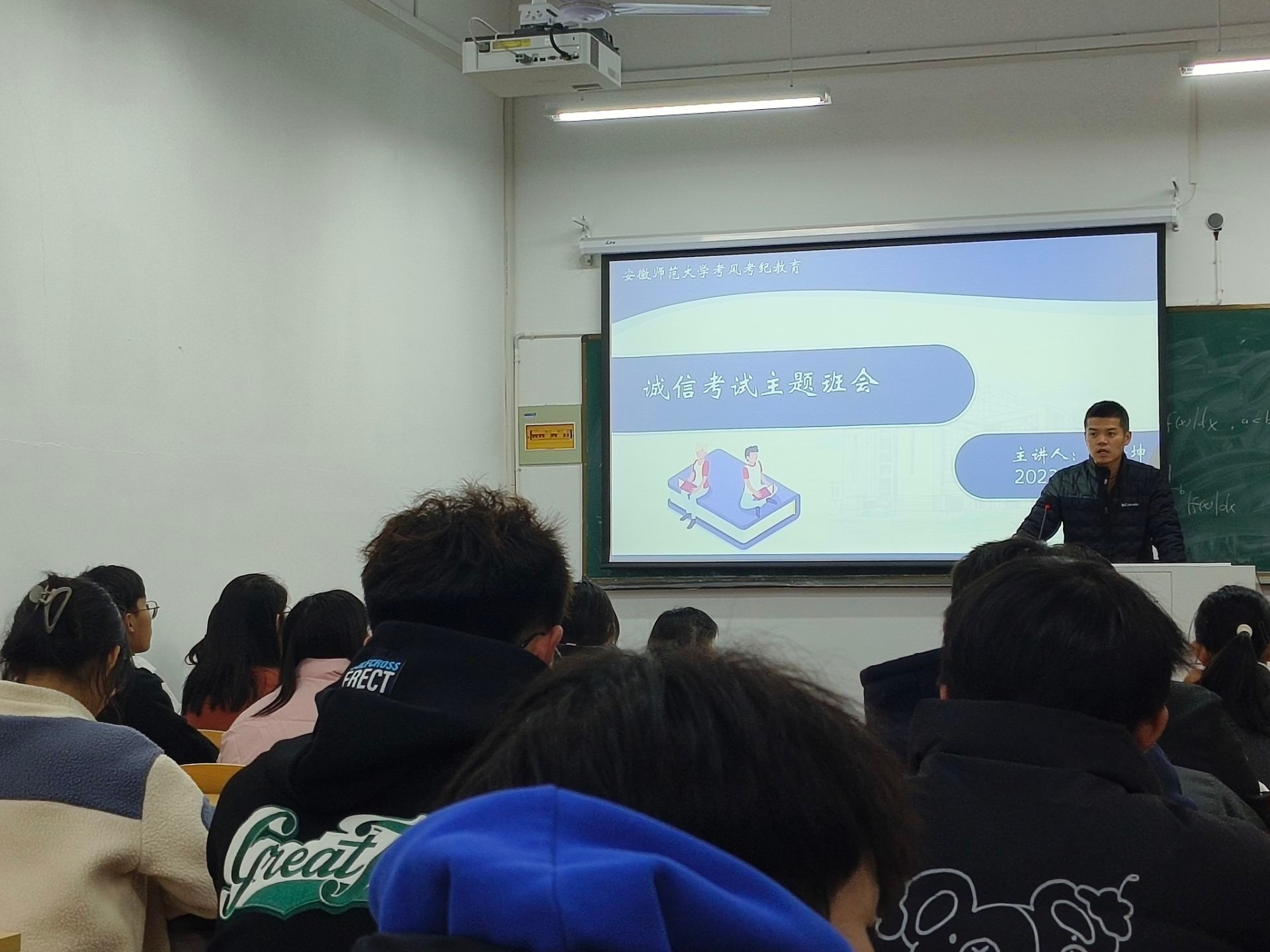 期末考试将至,为帮助同学们尽快进入复习状态, 进一步规范公司考试工作,树立良好的考风、考纪, 12月5日晚19:00,在辅导员魏泽坤的组织下,23级食品科学与工程专业于教学楼1313召开了以“诚信考试”为主要内容的主题班会。