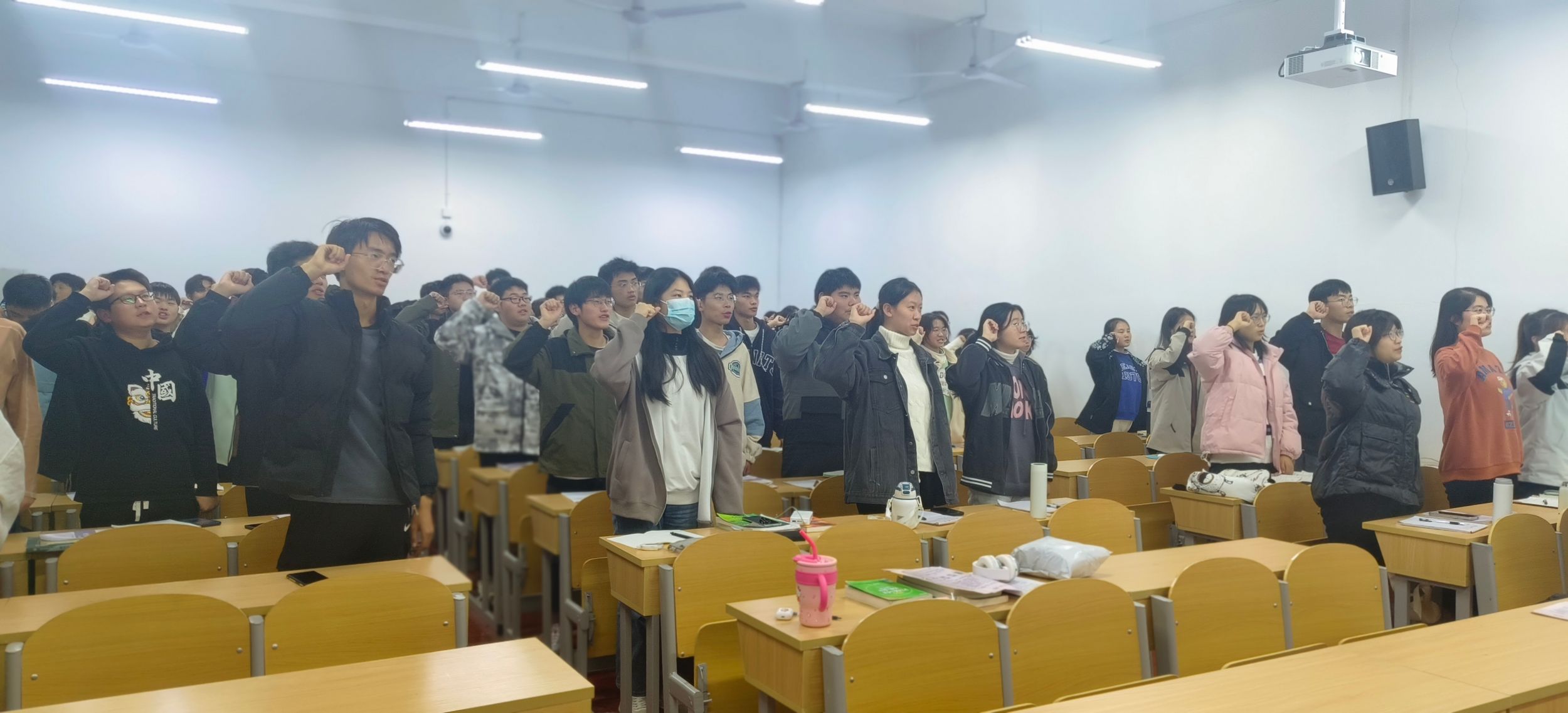 魏泽坤在会上向同学们讲解了关于考试作弊的危害,不仅践踏了诚信理念,加剧了信用危机,也助长了部分员工不劳而获、投机取巧的心理。同学们共同学习了相关规章制度,魏泽坤通过讲述身边真实的反面例子,告诫同学们切勿触碰诚信考试的底线。全班同学在班长的带领下进行庄严的诚信考试宣誓,会议在同学们铿锵有力的誓词中圆满结束。