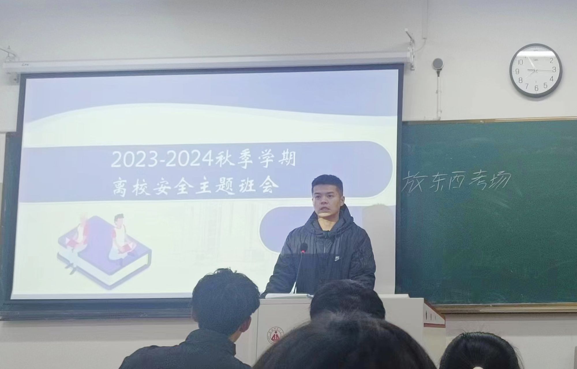 寒假即将来临,为保证员工安全离校,提高员工安全防范意识,增强员工安全防范能力,1月3日晚,23级食品科学与工程专业召开2023-2024秋季学期离校安全主题班会,辅导员魏泽坤主持会议。