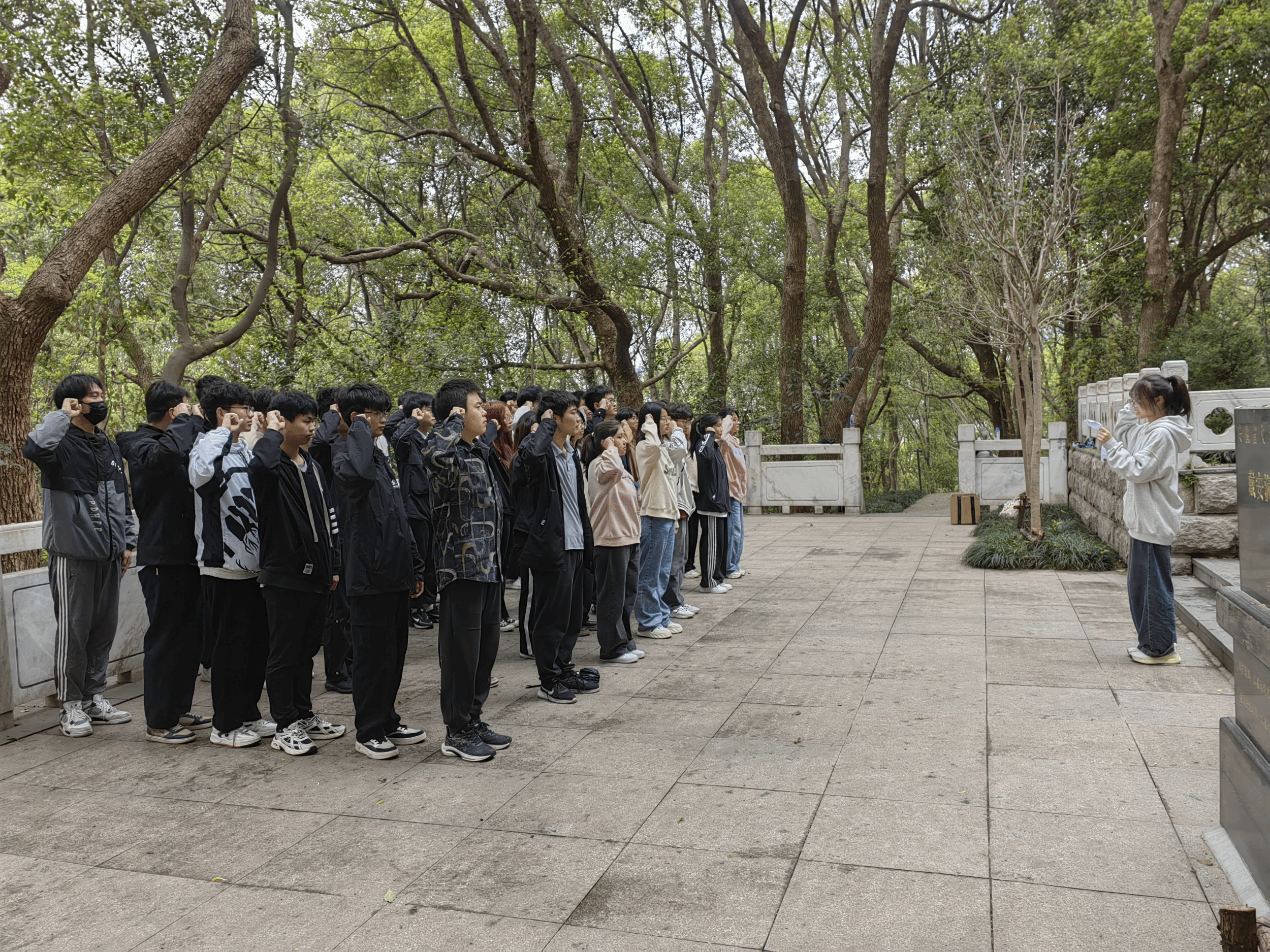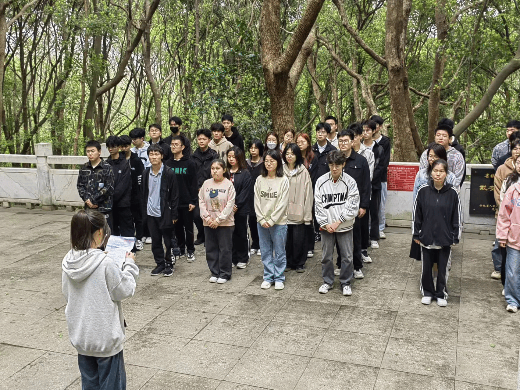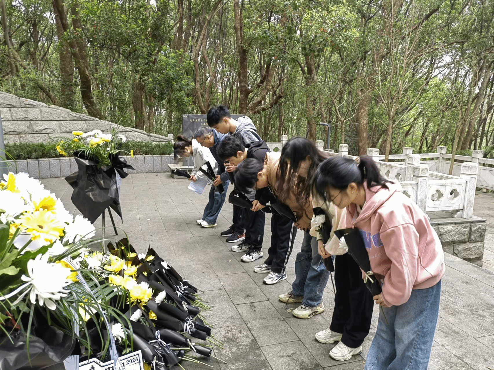 在纪念碑前,全体同学纷纷肃立,深切缅怀革命烈士的英雄事迹和丰功伟绩。在祭扫活动中,大家共同向烈士默哀,以示对烈士最崇高的敬意。接着同学们有序列队献花,以寄托对先烈的无尽哀思。随后,面对鲜艳的中国共产主义青年团团旗,员工代表带领全体同学举起右手,重温入团誓词,以坚定有力的宣誓声,表达新时代青年不忘初心、砥砺奋进的信念和决心。