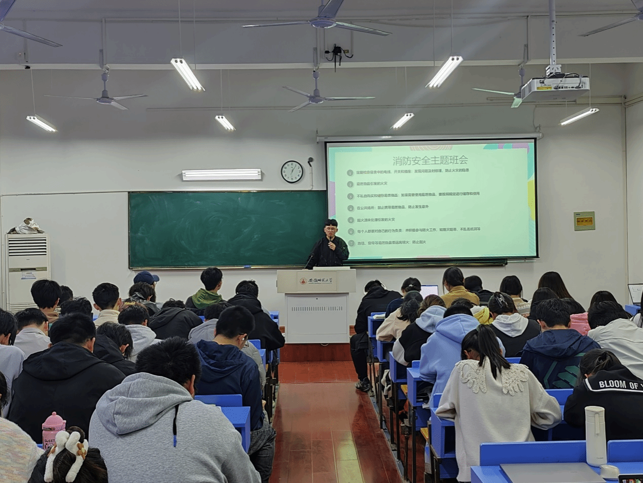 (本网讯 耿执)为普及消防安全知识,提高员工的消防安全意识,3月26日晚,23级生物技术专业于教学楼1203教室开展消防安全主题班会,会议由23级生物技术1班安全委员余国庆主持。
