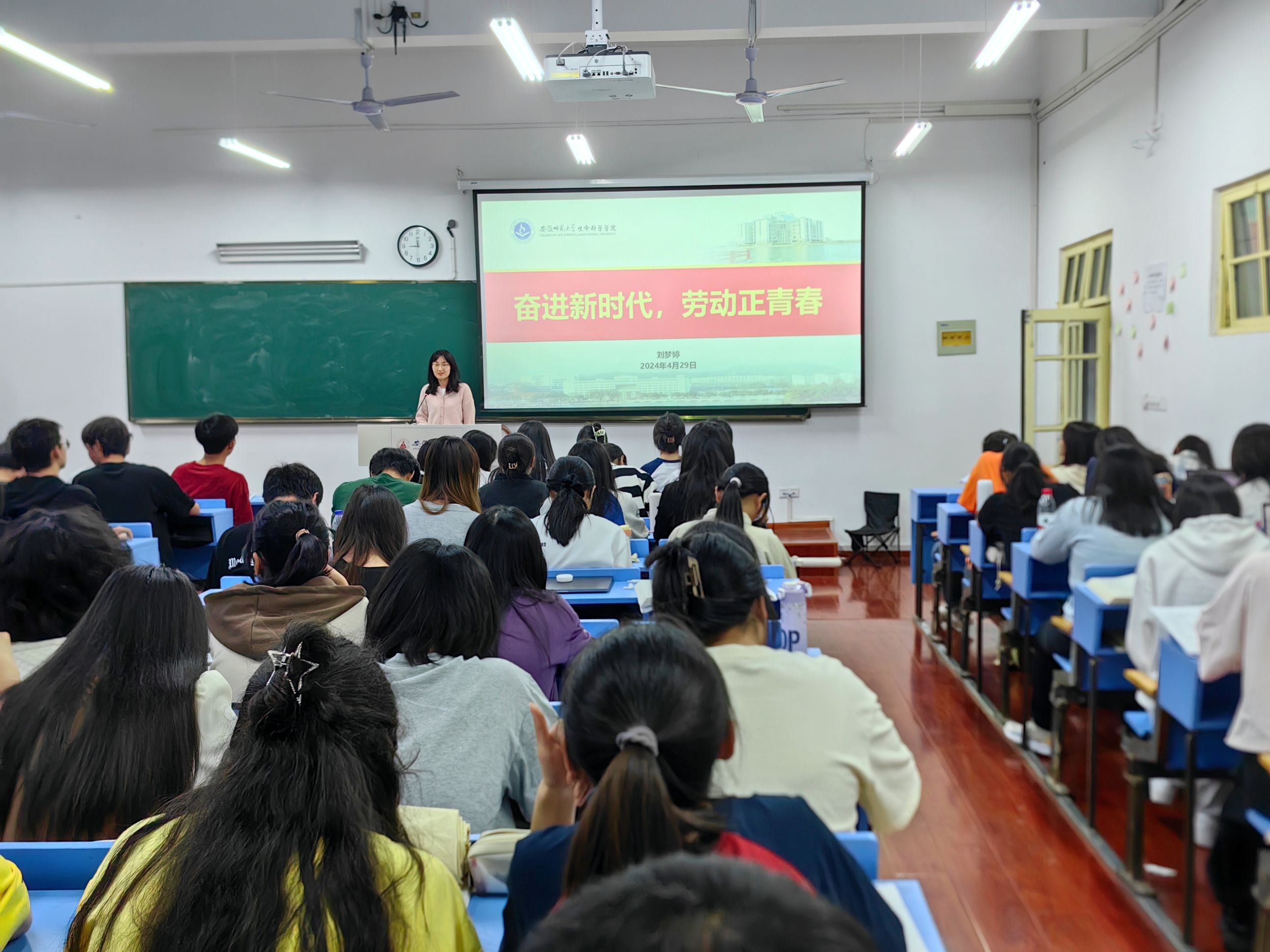 刘梦婷向同学们介绍了五一劳动节的由来和意义,强调了劳动在社会发展中的重要作用。接着介绍了时代楷模卢永根院士的先进事迹,呼吁同学们要学习卢永根为国家、为社会无私奉献的精神,笃行不殆。