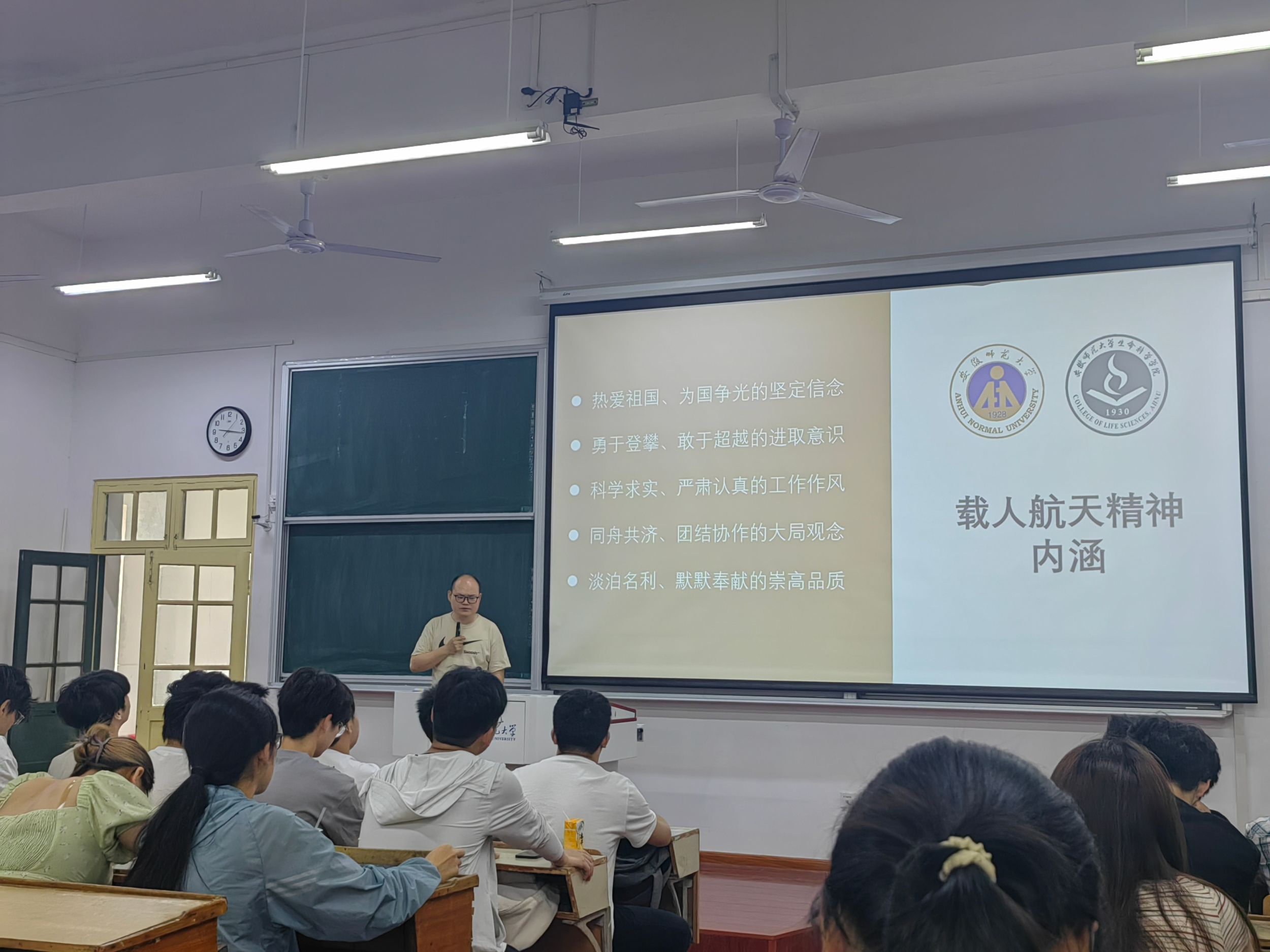 何馗馗介绍了神舟十六号载人飞船乘务组圆满完成任务及景海鹏等成长经历,着重解读了载人航天精神内涵,要求同学们深入学习、吸收内化、争做新时代好青年。