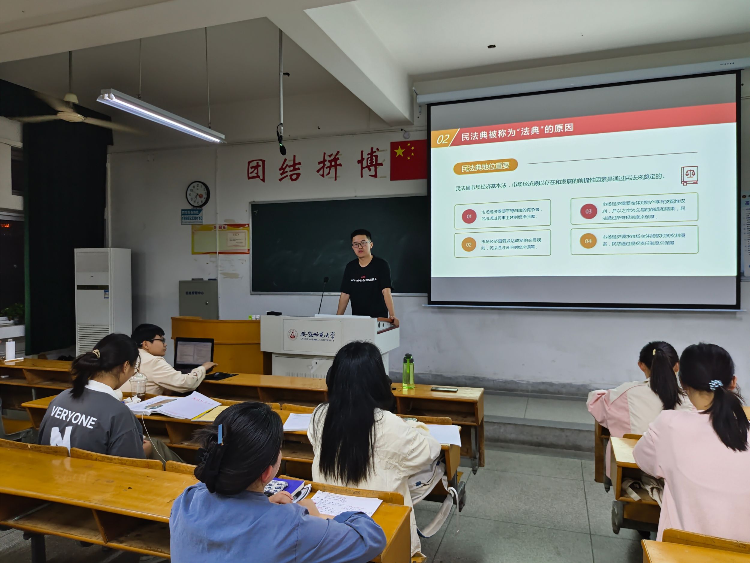 5月19日晚,2023级生物科学(师范)专业各班级在各自固定教室开展民法典宣传活动。2023级生物科学(师范)全体同学参与,活动由各班级思政委员主持。