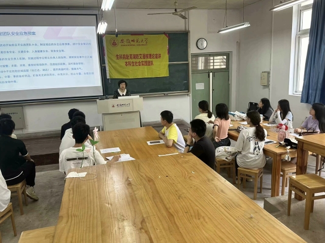 为更好地向群众传授防艾遏核知识,团队邀请了校医院副经理段萍老师进行了艾滋病、结核病的预防、传播和治疗的理论知识宣讲,同时段老师也对团队实践过程中可能出现的安全问题,如中暑、扭伤、动物抓伤等进行了提醒并给出了对应的急救措施。团队成员认真学习,为后面的宣传活动奠定了坚实的基础。