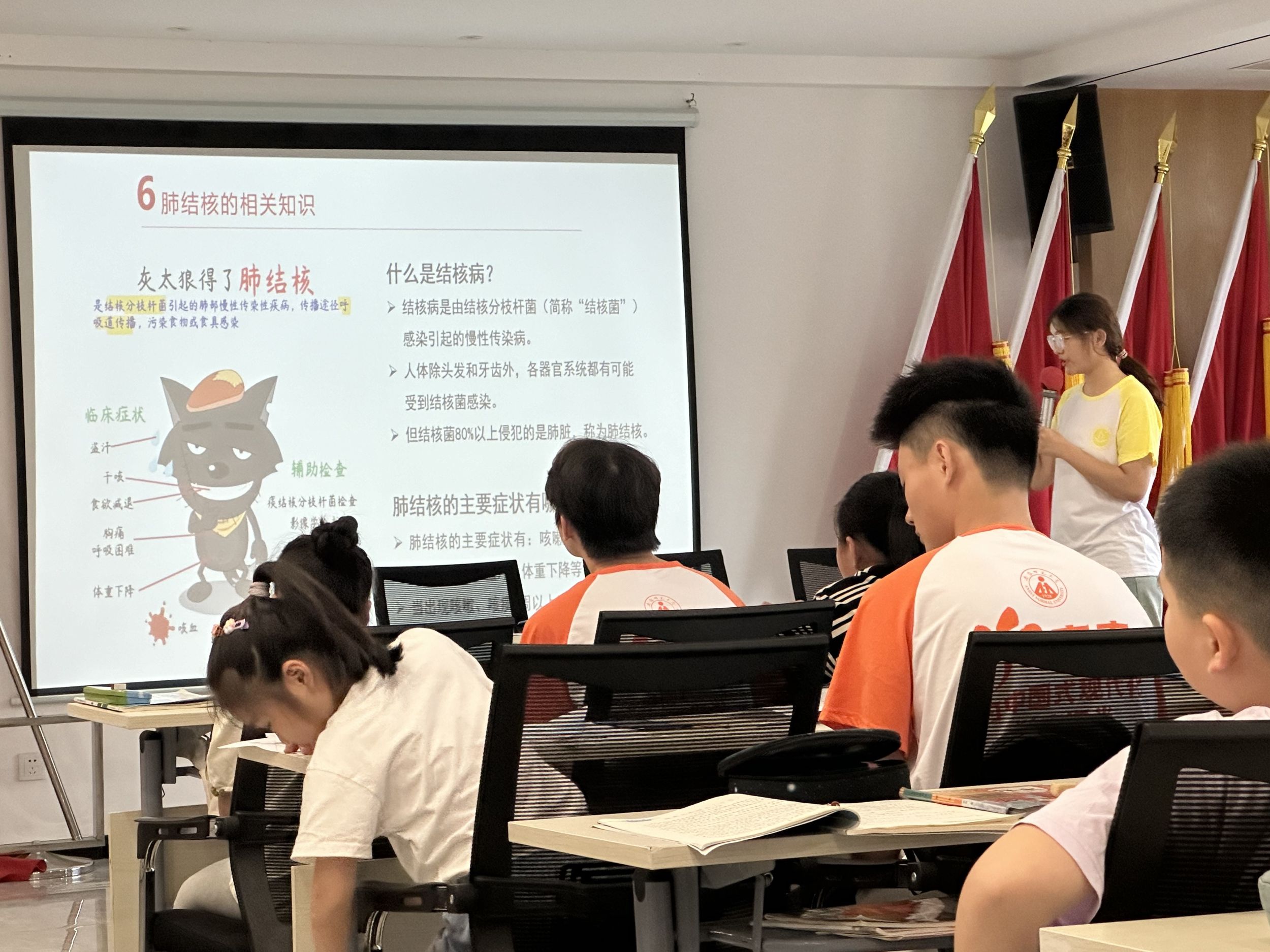 为充分调动孩子们的积极性,提高宣讲效果,团队成员与小朋友之间进行了有趣的互动,包括有奖问答和快问快答等。同时,为了便于小朋友们理解,成员们在宣讲过程中尽量避免不必要的专业术语转而使用通俗易懂或打比方式的词汇进行解释。除了单纯的宣讲外,团队还准备了一些动画短片配合宣讲的内容,从而加深小朋友们对艾滋病和结核病的理解,强化对艾滋病和结核病的预防意识。