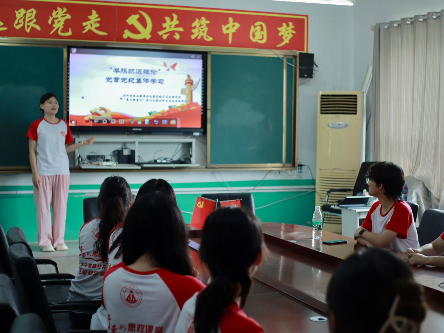上午九点,队长陈嫚带领同学们进行党纪学习教育,主题是“举旗帜,送理论”。旨在通过深入学习党的理论知识,增强同学们的思想教育和组织纪律意识。