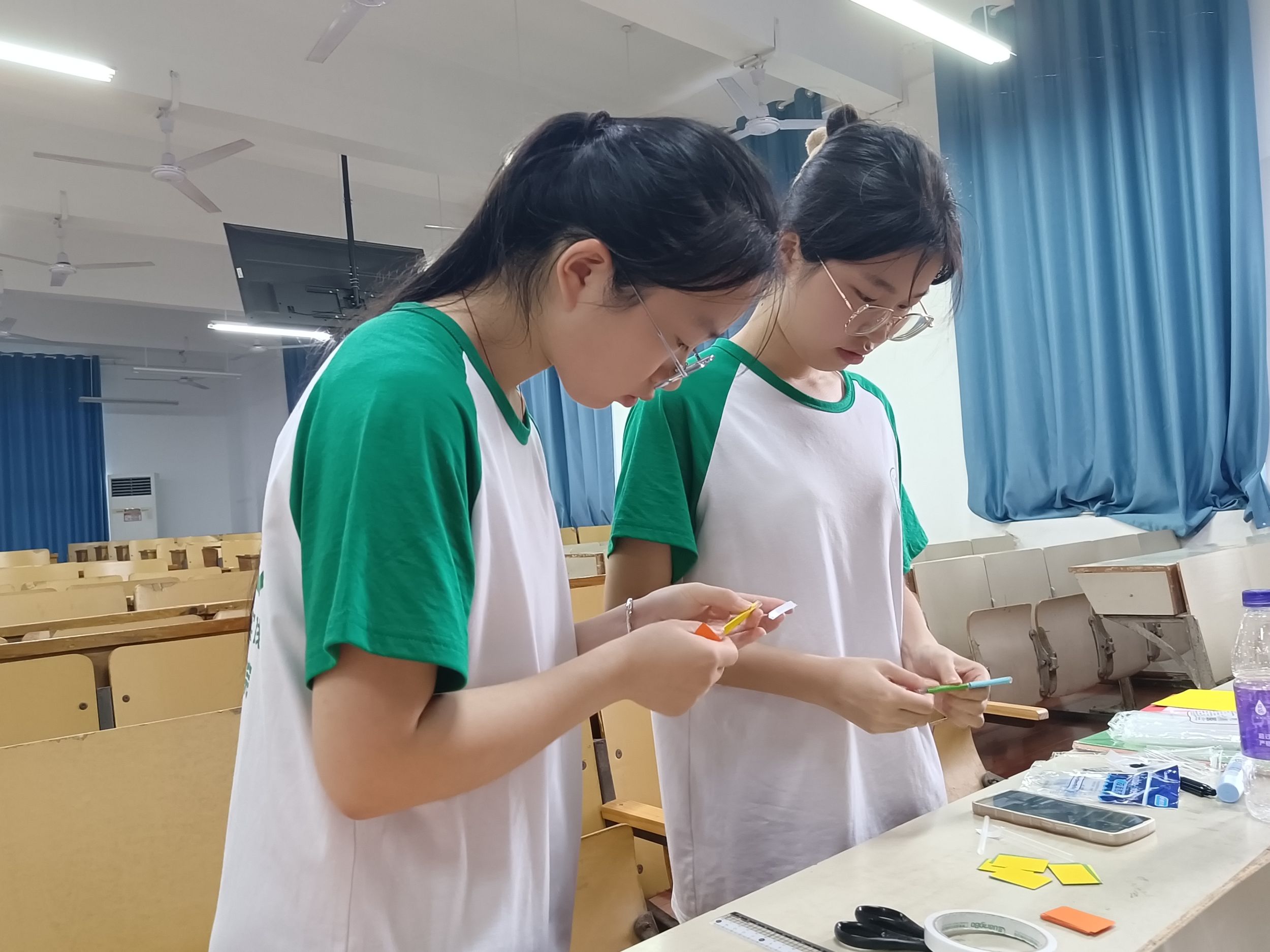 本网讯(生科院 吴睿 黄文静)为提升师范技能,丰富课堂活动,7月17日下午,生科院赴芜湖小学期本科生社会实践团队在生化楼A109和教学楼1401分别录制了提取水果中的DNA的实验视频和DNA双螺旋结构模型教具制作视频。