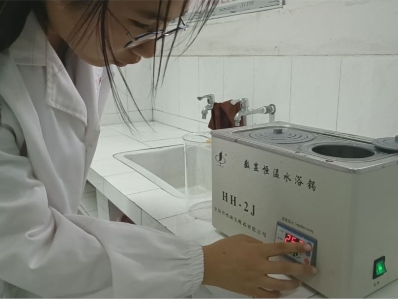实践组人员使用电子秤、恒温水浴锅、量筒等仪器进行实验材料的配置,确保实验的真实性、科学性。实验的负责人与宣传组人员密切交流,确保实验视频的录制能顺利进行。在实验的过程中,操作人员严格遵守实验室安全规范和实验操作规范。在实验结束后,队员将实验室打扫干净,检查水电以及门窗是否关闭,确保实验室和实验人员的安全。