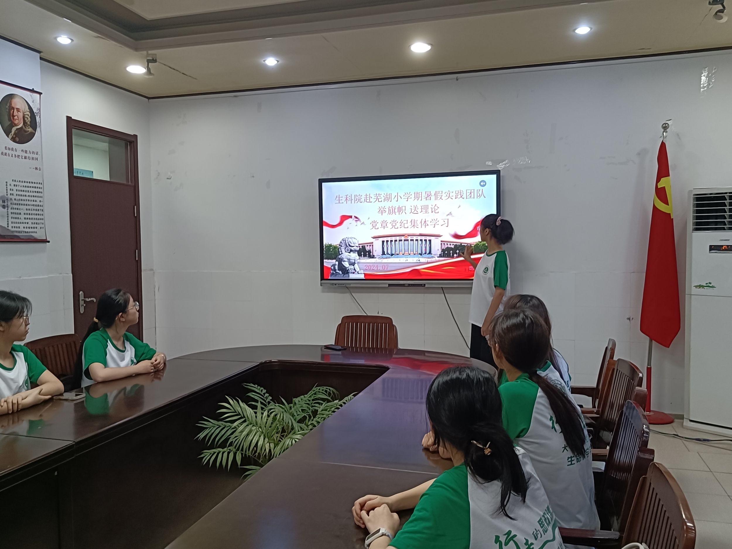 本网讯(生科院 吴睿)7月28日下午,生科院赴芜湖小学期本科生社会实践团队开展“举旗帜,送理论”党章党纪集体学习活动。活动由队长刘涵主持。