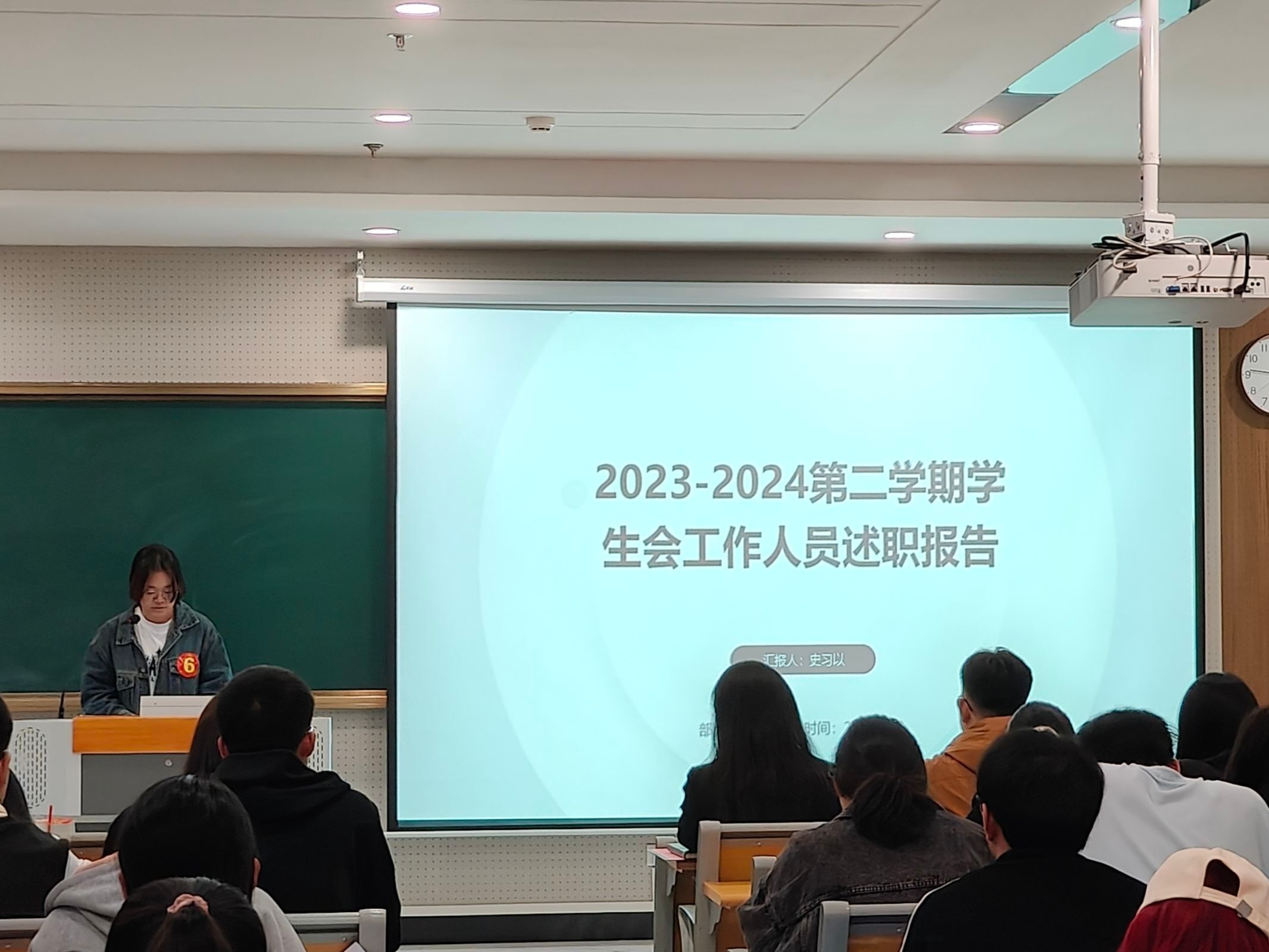 会上,杨睿莹宣读了本次述职评议报告会的活动规则、评议标准和活动流程。随即,团委员工会各部门负责人以PPT汇报的形式,先后从个人成就、部门管理、团队成果和未来展望等多个方面对上一阶段的工作进行了细致阐述。