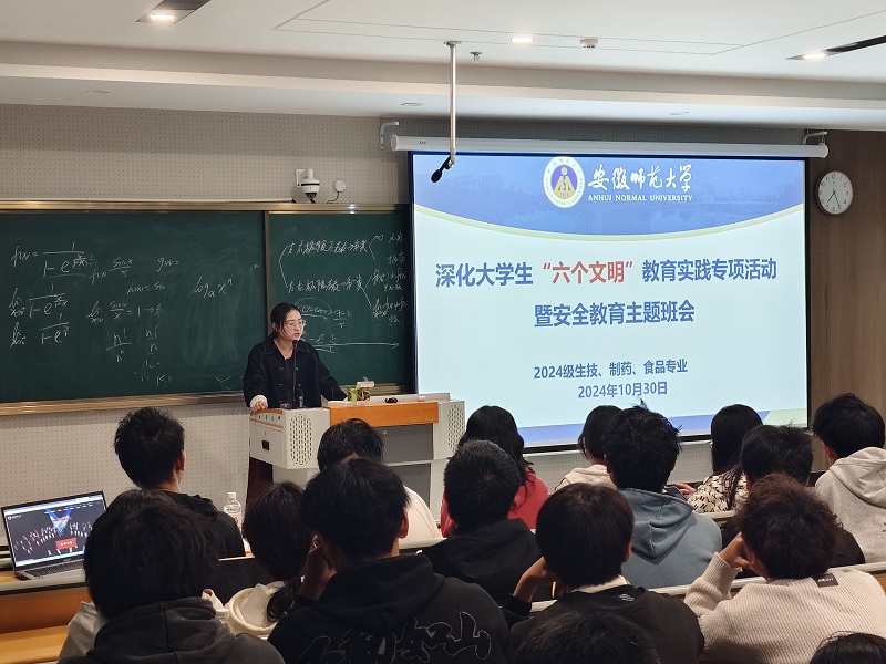 10月30日晚19点,m88官网2024级生物技术、生物制药、食品科学与工程专业于清源楼C407教室开展深化老员工“六个文明”教育实践专项活动暨安全教育主题班会。班会由辅导员蒋婷婷主持。