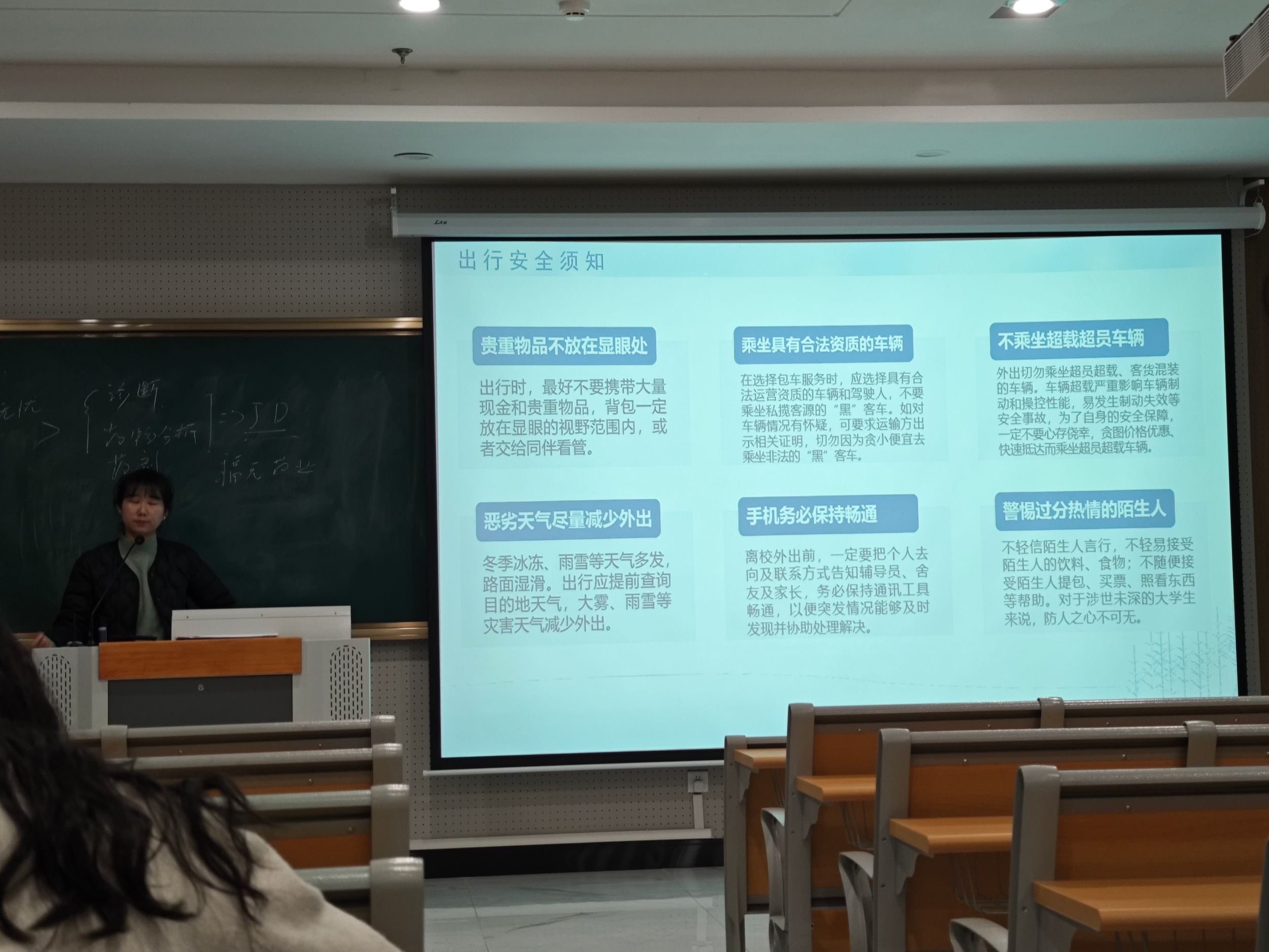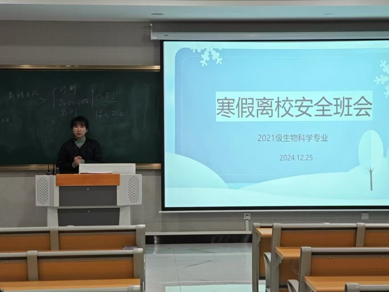 12月25日晚,m88官网2021级生物科学专业召开寒假离校安全班会,辅导员周文娟围绕交通安全、人身安全、财产安全等一系列内容开展。同时,周文娟嘱咐同学们严格按照离校要求,提交申请,提醒大家安全是第一要务。
