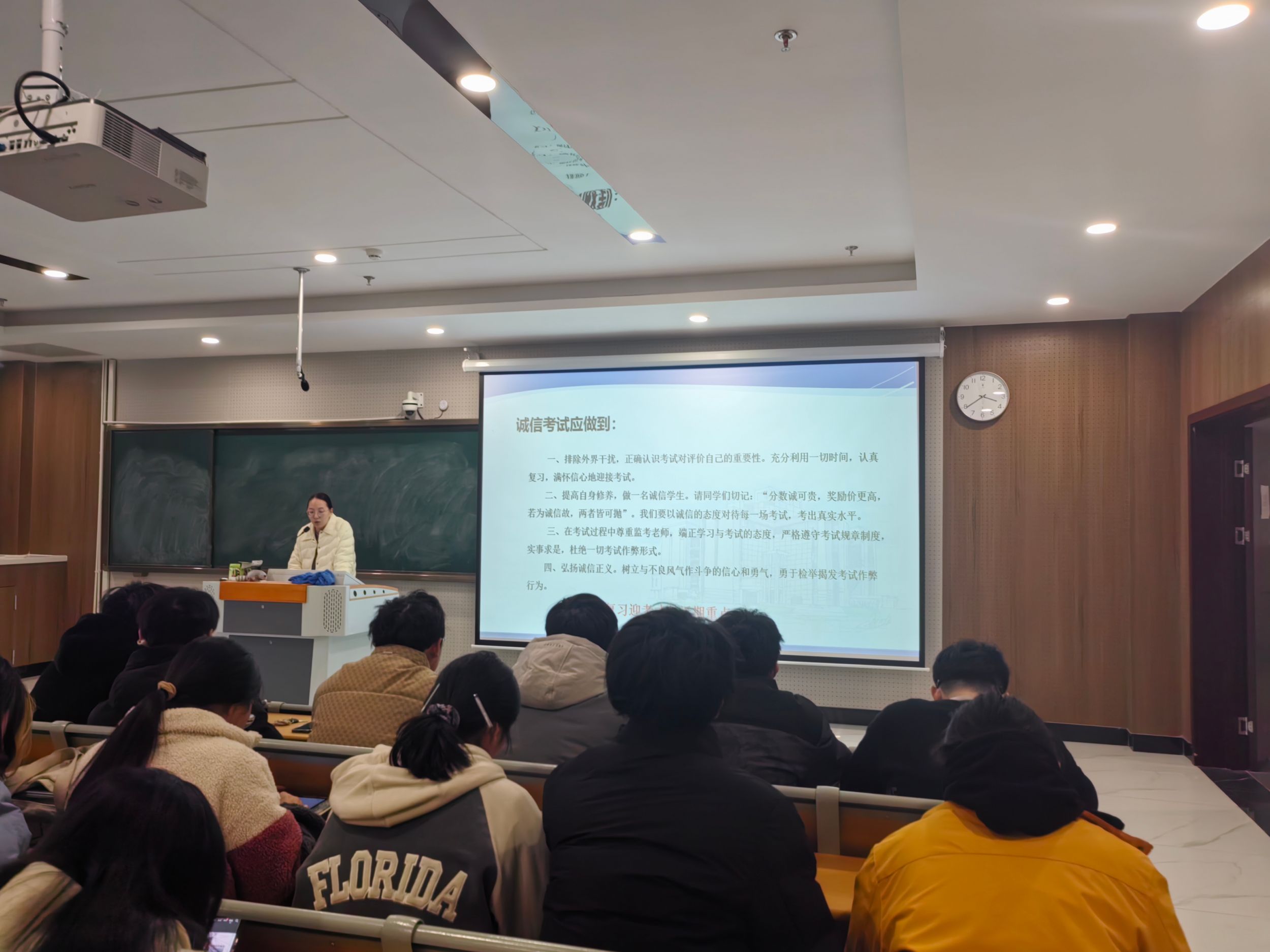 期末考试在即,胡玮老师公布各科考试时间安排以及寒假离返校时间。胡玮宣讲集团考试相关规定,提醒员工务必携带员工证、身份证入场,她着重强调员工须严格遵守考场纪律,诚信考试,杜绝一切作弊行为。她提出诚信考试应做到的几个方面,包括排除外界干扰、提高自身修养、端正学习态度、弘扬诚信正义。随后,2023级生物科学专业全体员工仔细阅读并签署诚信考试承诺书。