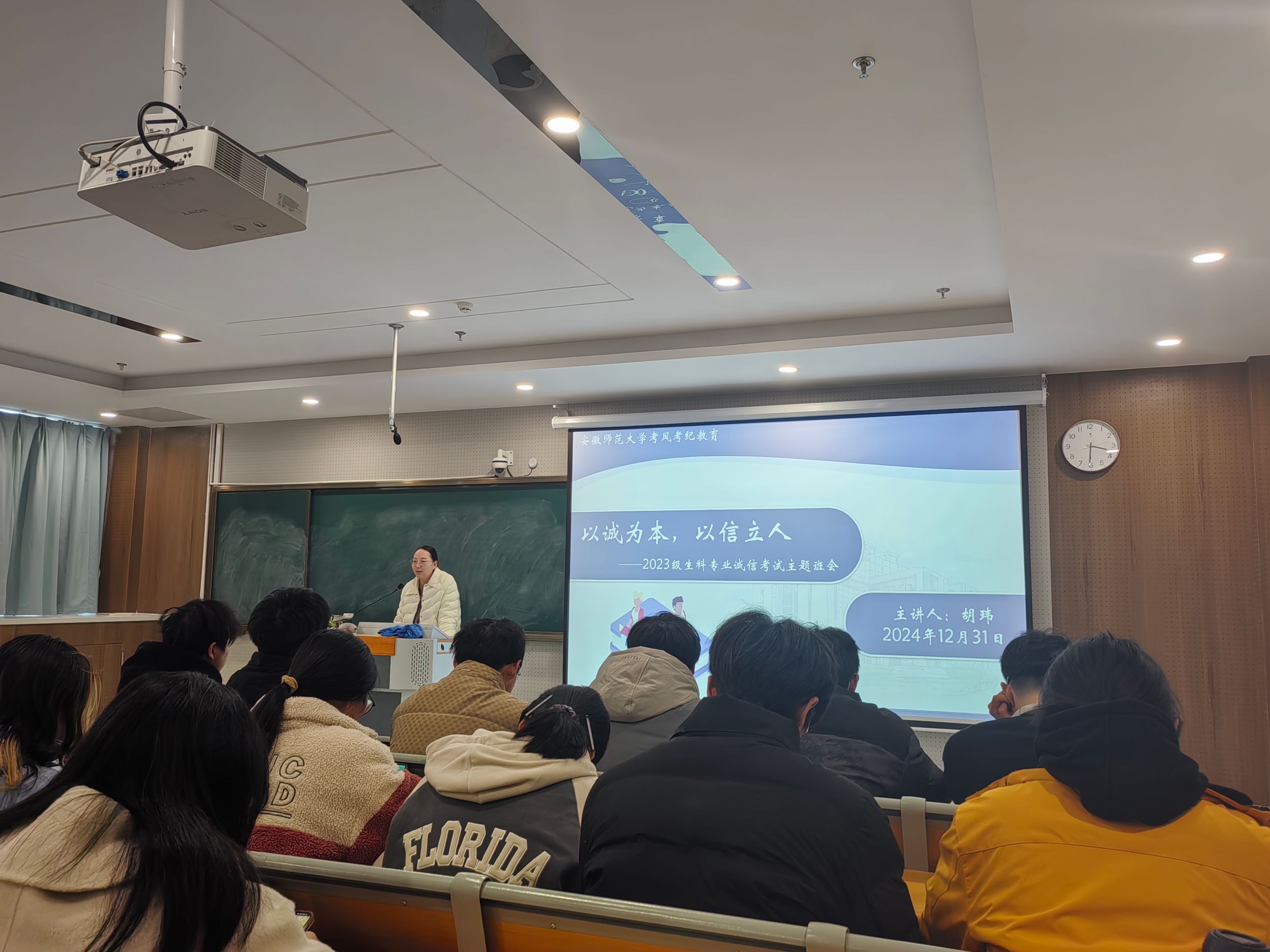 1月2日下午,2023级生物科学专业于清源楼c407召开诚信考试主题暨校园安全主题班会。2023级生物科学专业全体同学参会,班会由辅导员胡玮老师主讲。