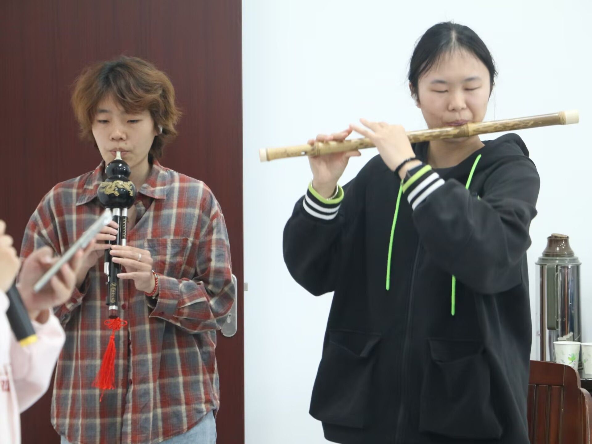 比赛现场,选手们纷纷登台献唱,用充满感染力的歌声诠释着青春的故事。曾广橙带来的《至少还有你》,深情款款,瞬间抓住了听众的心弦;黄炳善演绎的《富士山下》,独特的嗓音搭配动人的旋律,让人沉浸其中。王涵和李明玉合作的小合唱《你不知道的事》默契十足,传递出青春的懵懂与美好。吴涛的《于是》节奏明快,洋溢着青春的活力;温美华的《是你》旋律悠扬,诉说着青春的柔情。何晶晶与刘增悦合唱的《如愿》饱含着对未来的憧憬,余扬阳的《孤独患者》则用歌声表达出青春成长中的细腻情感。管家乐的《体面》、刘心愉的《这条小鱼在乎》等独唱作品,充分展现了选手们扎实的唱功和自信的风采。另外,赵晓玉、宫军豪等同学带来的《黄河大合唱 保卫黄河》,以重唱、小合唱和表演唱相结合的形式,激昂的旋律中饱含着爱国热情,将思政教育巧妙融入音乐表演,展现出新时代青年的责任与担当。乐队表演更是将现场气氛推向高潮,黄仁炜、曾睿等同学组成的乐队带来的《明天你好》,电子琴灵动,吉他温暖,轻快旋律交织成长期许,清澈音符流淌出晨光般的希望与憧憬,传递出对未来的希望;陈雨晗、刘心愉等同学的《年轮》,笛声清亮铺陈主调,葫芦丝婉转添柔润。二器合鸣交织出年轮般的时光涟漪,以气韵流转诠释古风曲境。罗成成同学的《Always Online》,动感的节奏点燃全场。多样的表演形式,丰富的歌曲主题,让现场观众沉浸在音乐的海洋中。