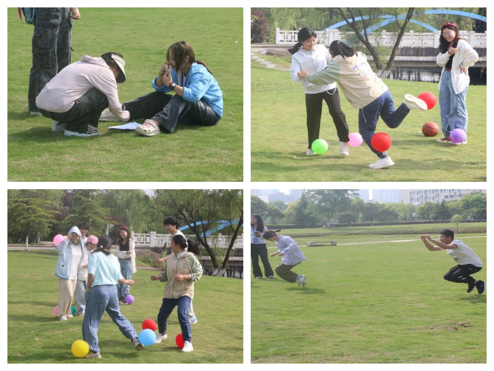运动会设置了多个妙趣横生的项目。“你画我猜接力跑”,参赛队员们一边争分夺秒地奔跑,一边凭借生动形象的肢体语言传递信息,考验着彼此的默契与反应能力。“仿生竞速”,同学们模仿各类动物的行动姿态全力冲刺,趣味十足又创意满满,引得现场笑声与掌声不断。“夹球跑” 项目则要求选手们巧妙协作,用身体夹住球稳步前行,大家紧密配合,尽显团队精神。“气球大战”最为激烈,五彩斑斓的气球在选手们的脚下“砰砰”作响,大家灵活闪躲、积极进攻,在一片欢声笑语中释放着青春活力。
