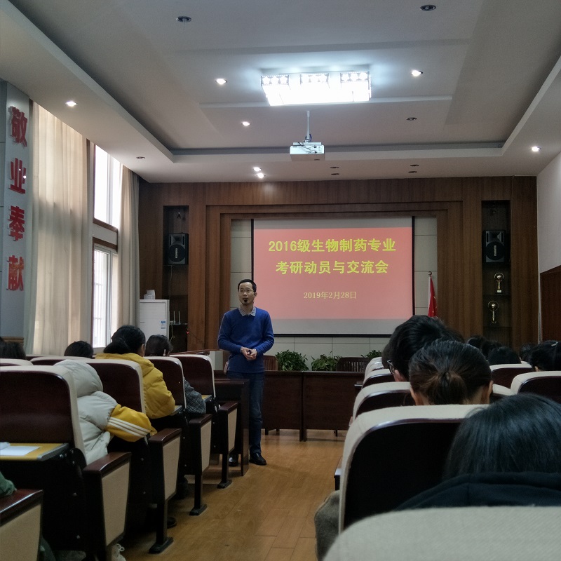 本网讯(生科院 房雪)  228日下午,2016级生物制药专业在生科院一楼学术报告厅举行考研动员与交流会。会议由专业负责人陈冬生教授主讲,辅导员何馗馗主持。