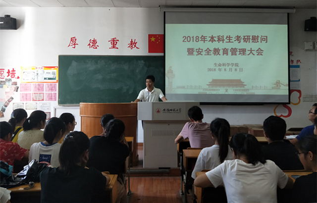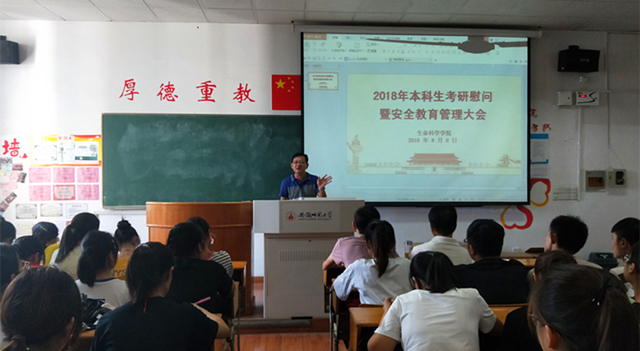 蒋学波从“考研是人生的升华,成功的阶梯;考研是家族的期盼,父母的希望;考研是新时代赋予青年的责任”三方面,诠释了考研的意义。并叮嘱同学们“注意劳逸结合、注意学习方法、注意交流沟通”。最后,他勉励同学们要以韩斌院士为代表的杰出员工为榜样,志存高远,脚踏实地,走向更高层次的学习平台,书写人生新篇章。