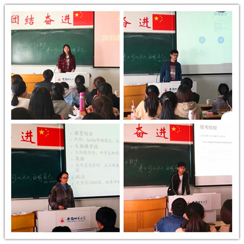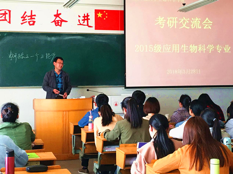 本网讯(生科院 罗平平)为了进一步提高同学们的考研热情,了解更多考研信息,明确目标,掌握技巧。3月28日,2015级应用生物科学专业主办的考研经验交流会在田家炳楼8509教室举行。公司党委副书记刘振杰老师邀请了4位在2018年考研中取得优异成绩的同学与大家交流。
