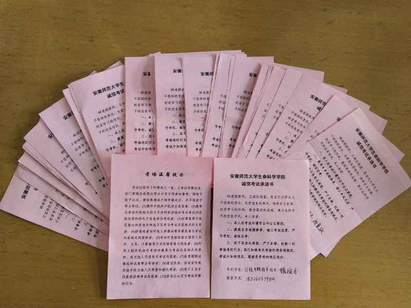 最后,在班长张童欣的带领下,全体起立进行诚信考试的郑重宣誓。宣誓结束后,所有同学在自己的《诚信考试承诺书》上签字,承诺必将端正考试态度,严守考纪,诚信应考。
