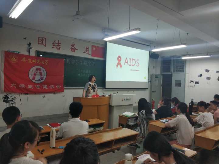在接下来的内容中,宣讲员向我们介绍了什么是艾滋病,并且还详细介绍了艾滋病病毒感染者和艾滋病人的异同点,形象生动,加深了同学们对艾滋病的了解。与此同时,宣讲员着重讲解了艾滋病的三种传播途径,它们分别是:性传播,血液传播,母婴传播。三种传播途径中,算性传播所占比例最大,约占全球70%-80%。艾滋病的危害也是一项讲解内容,同伴员们分角度讲述了对个人的危害、对家庭的危害,以及对国家和民族的危害。其危害性让人痛心不已!
