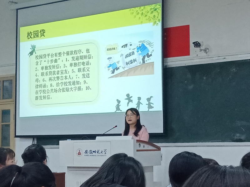 会上,蒋婷婷老师以一个短信诈骗的案例展开,引出讨论“如果遇到类似的情况我们应该怎么做?”随后,她在班会中给大家详细普及了校园安全知识,包括了防盗防骗、防火防电、防传销及校园贷、出行安全和饮食安全等五个方面的内容。她强调,安全无小事,希望大家在以后的生活中提高警惕,遵守纪律,增强安全意识。