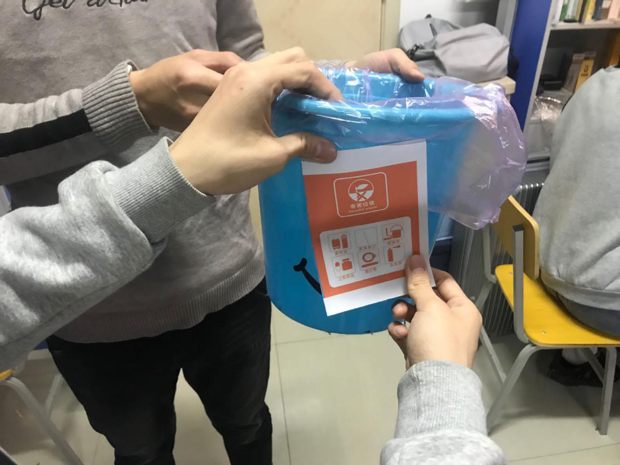 活动最后,王旭向各个寝室分发垃圾分类标识牌,提议每个寝室将四种不同的标识张贴在寝室垃圾桶上,以此建立属于寝室的“垃圾分类”系统。王旭的这一提议得到了班级同学的积极响应!班级同学在拿到垃圾分类标识牌后,回寝室后纷纷将标识牌张贴起来。