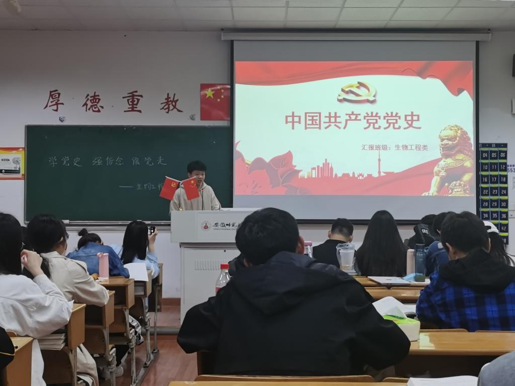 本网讯(叶润言 胡玮)“欲知大道,必先为史。”为坚定不忘初心、牢记使命的决心和信仰,从历史中获得启迪,以昂扬的姿态迎接中国共产党百年华诞,4月25日晚,2020级生物工程团支部在教学楼1409召开“学党史 强信念 跟党走”主题支部大会。活动由团支部书记赵一鸣主持,全体生工二班员工参与学习。