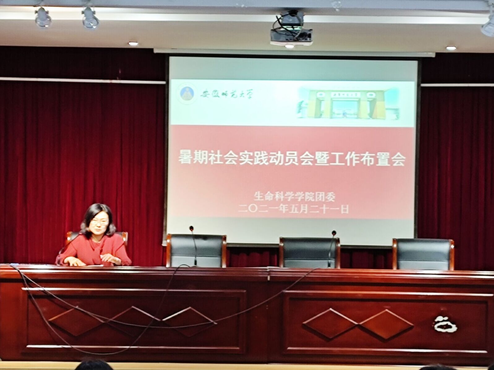 胡玮就今年暑期社会实践团队组建文件进行了解读、介绍暑期社会实践活动的准备工作及注意事项。汪倩倩作了动员讲话,她指出,今年是中国共产党成立100周年,也是“十四五”开局之年,要围绕庆祝中国共产党“百年华诞”的主题,开展理论宣讲、专项调研、志愿服务,选题要结合专业,深入挖掘校内外资源,做到传承和创新;同时强调项目方案要做好疫情防控和安全保障,要有危机预案。