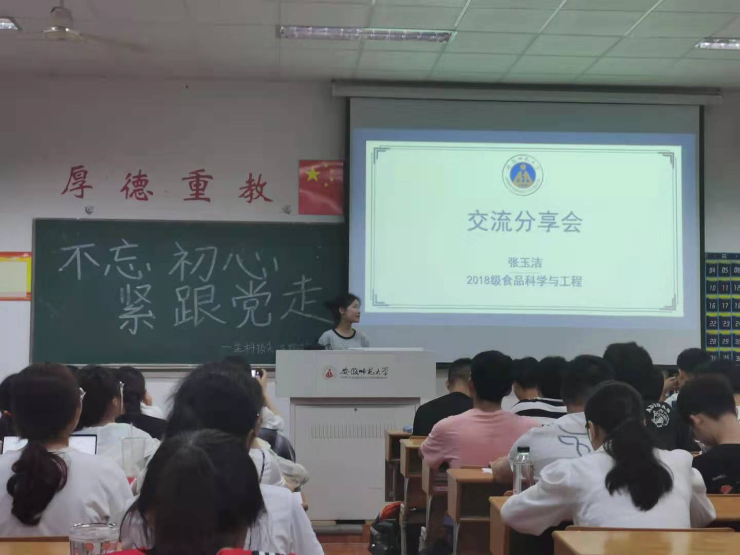 本网讯(生科院 叶润言 王芳)为了让同学们进一步了解老员工活,用积极向上的态度更好的规划老员工活,提高个人品质以及能力,2020级生物工程类专业以及生科拔尖班于6月15日在教学楼举行“青春导航”宣讲活动。此次活动由团支部书记赵一鸣主持并邀请到了2018级食品科学与工程专业张玉洁同学进行宣讲。