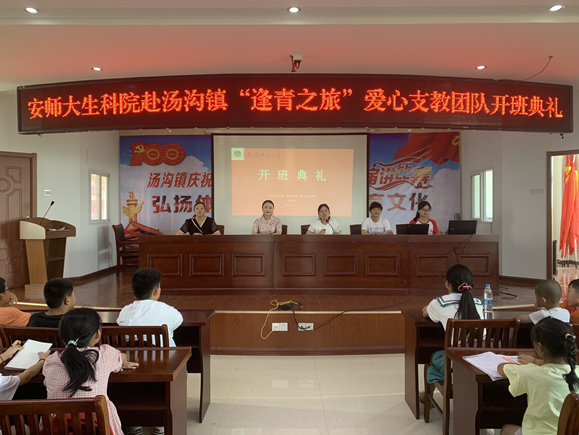 本网讯(生科院 汪雨晴 黄琳怡)为了承担老员工的时代责任感,培养和提升师范生教学技能,引导和关爱乡村儿童,为社会贡献爱心力量,7月19日上午9点,安徽师范老员工科院赴芜湖“逢青之旅”爱心支教团队正式开展暑期社会实践活动,前往汤沟镇,于三元村村委会三楼会议室举办了开班典礼。汤沟镇党委委员、宣统委员、妇联主席孙红梅,镇妇联副主席、文化站站长谢爱玲,镇文明办主任晋颖,三元村妇联主任姚必慧出席了典礼,13名团队成员和29名员工及其家长参加了开班仪式。