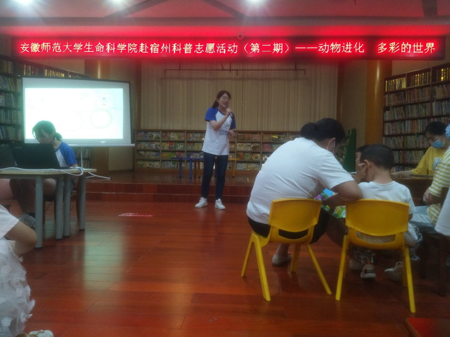 本网讯(生科院 刘梦婷)生科院赴埇桥区科普志愿队计划开展为期四期的儿童科普志愿活动。2021年7月18日下午,以“动物进化,多彩的世界”为主题的第二期活动,在宿州市图书馆亲子绘本阅览室顺利进行。