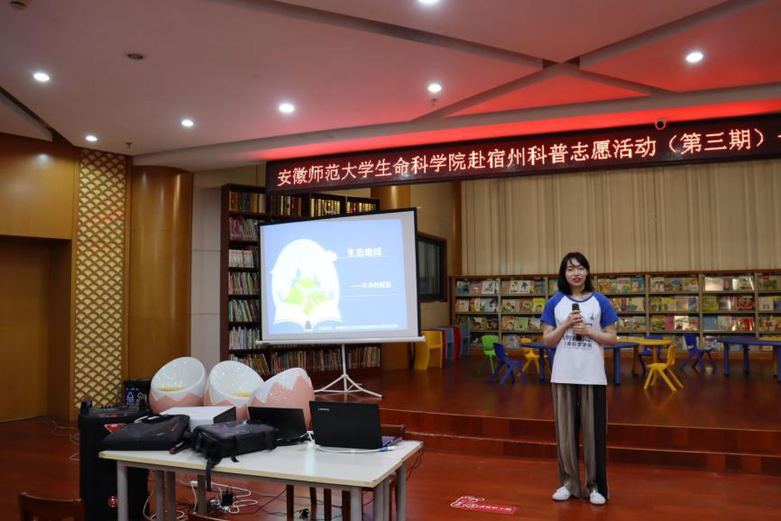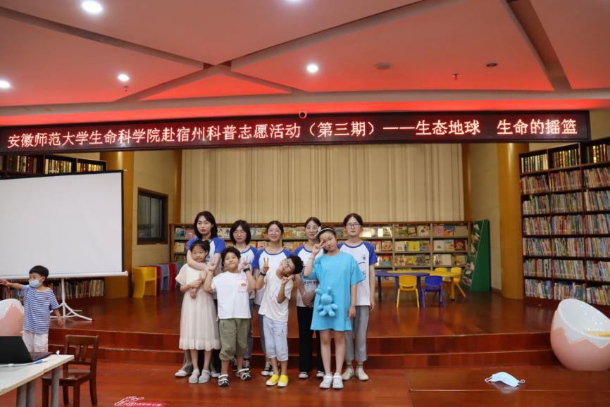 本网讯(生科院 程月)2021年7月21日,为了锻炼孩子们的科学思维能力以及继续巩固他们所学的科学知识,安徽师范老员工命科学公司赴埇桥区科普志愿活动科普志愿团队的8位志愿者再次来到宿州市图书馆亲子绘本室进行第三期的科普志愿活动,活动主题为生态地球——生命的摇篮。