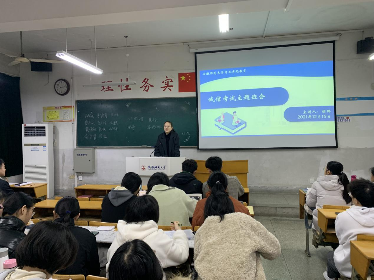 本网讯(生科院 黄琳怡)为进一步加强考风考纪教育,增强员工诚信意识,树立良好的学习风气,共创良好的考试环境,12月15日,2019级生物科学(师范)、食品质量与安全、食品科学与工程专业先后开展诚信考试主题班会,班会由辅导员老师胡玮主持。