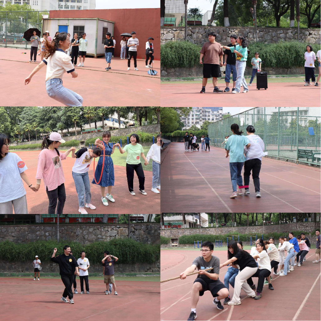运动会包括“两人三足”、“穿越呼啦圈”、“热血躲避球”、“团队拔河”4个项目,班级同学共分为四个队伍参加比赛。率先开赛的是 “两人三足”接力赛,该比赛要求两人一组默契配合共同完成比赛,虽有同学险些摔倒,但为不耽误团队进程,仍拼尽全力和同伴冲向终点;团体赛“穿越呼啦圈”更是一场团队协作精神和速度敏捷度的比拼,同学们在团队赛中逐渐得心应手,配合也非常默契;随后的“热血躲避球”更是将活动推向高潮,各队选手们在规定场地掷沙包躲沙包,灼灼骄阳也阻挡不住同学们的热情,大家的脸上都洋溢着兴奋的笑容,将汗水挥洒在操场之上;最后决一胜负的关键在于拔河比赛,同学们齐心协力、拼尽全力,用力量和团结诠释了合作的可贵精神。