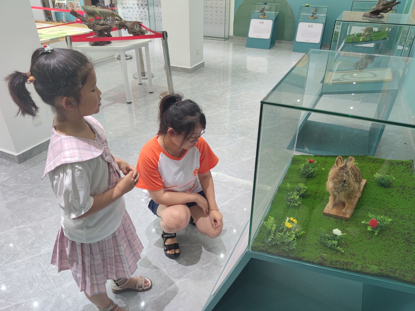 启动仪式结束后,团队立即投入到工作中,队员们作为解说员,接待来访的家长与小朋友们,为小朋友讲解自然教育中心里的标本、活体动物等。同时孩子们也提出了一些自然科普的小问题,队员们都耐心地做出解答。