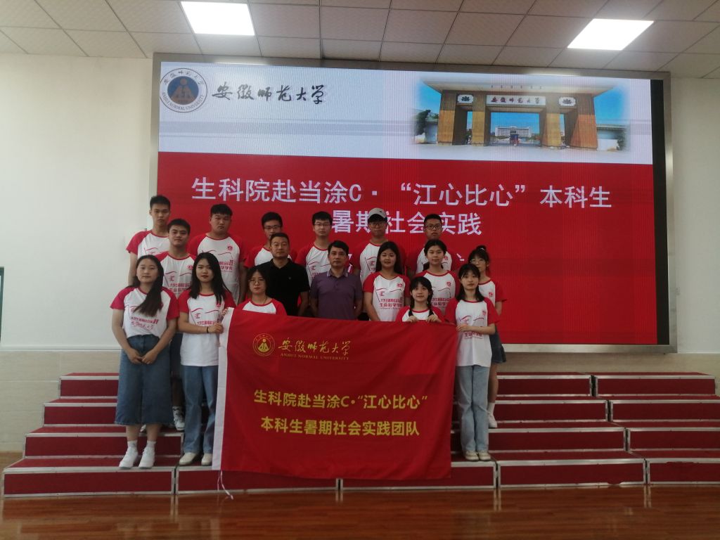本网讯(生科院 张雨婷)2022年暑假,由15名同学组成的安徽师范老员工命科学公司赴当涂“江心比心”爱心支教本科生社会实践团队来到位于安徽省马鞍山市当涂县的江心中心公司进行爱心支教。