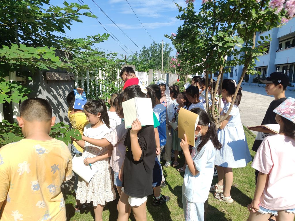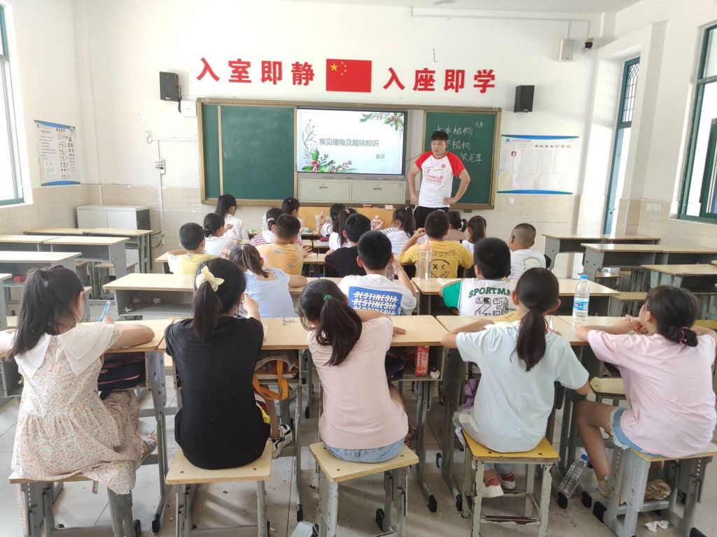 本网讯(生科院 袁闻才)为丰富乡村儿童的暑期生活,增强孩子们对植物的认识,提升孩子们对大自然的兴趣。生科院赴当涂C.“江心比心”爱心支教本科生社会实践团队于2022年7月10日上午在江心中心公司开展了野外植物识别课。团队成员赵卫、夏鹏程、张硕、朱峻魄和25名公司员工参与本次课程,赵卫为校内植物识别课的主讲人,夏鹏程、张硕和朱峻魄为助课教师。