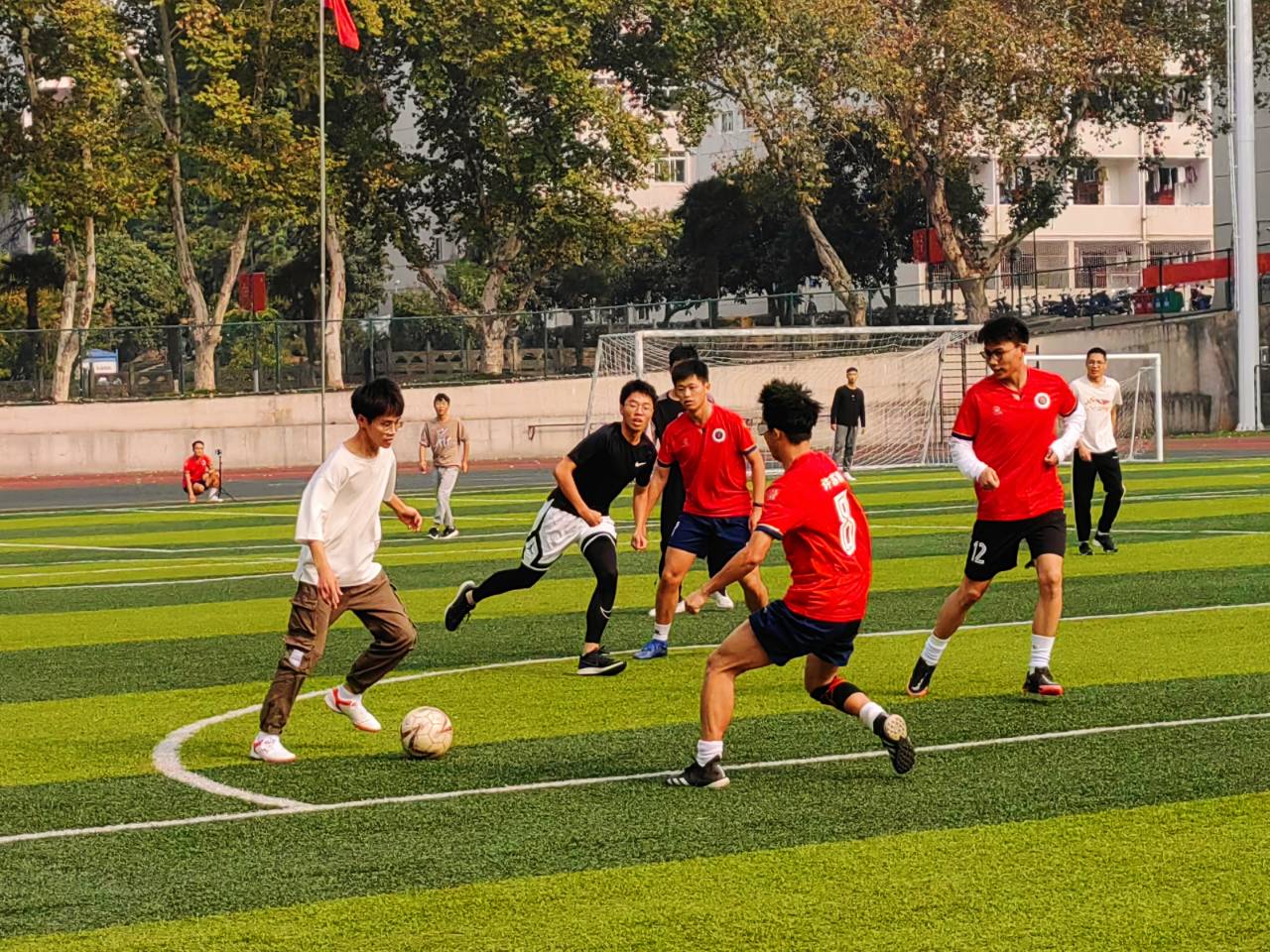 为庆祝党的二十大胜利召开、迎接公司第51届田径运动会,10月23日上午,m88官网2022级生物科学专业男子足球队队与公司兄弟公司联队举行了一场足球友谊赛。比赛中,同学们赛出青春、比出友谊,最终握手言和。