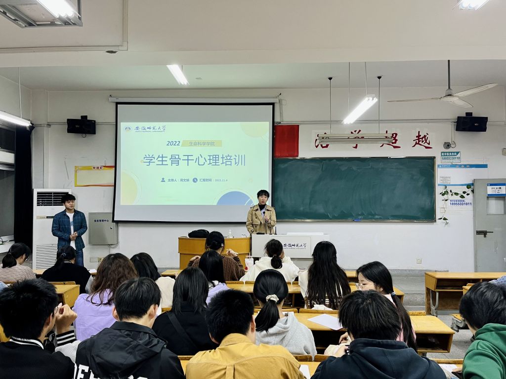 11月4日晚,在田家炳教育书院8304教室,m88官网老员工发展辅导站如期举行2022年“10·25”员工骨干心理健康培训。本次活动旨在帮助2022级新生适应校园生活、深入了解自己,更好地营造舒适、自洽的生活与学习氛围。公司发展辅导站站长周文娟主持活动,校心理健康中心助理邹孔伟担任主讲嘉宾。出席本次活动的主要成员为m88官网2022级各班骨干。