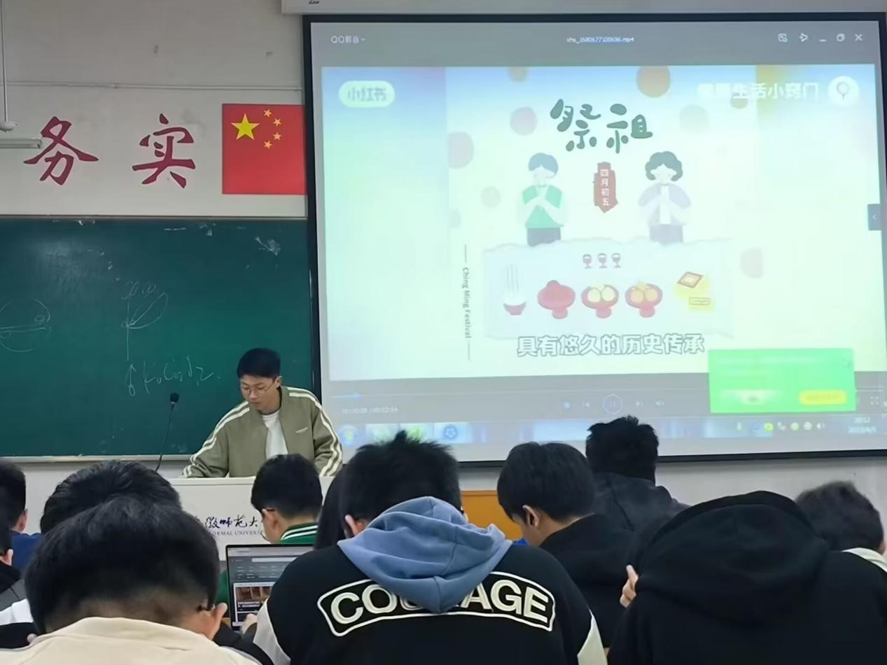 各班级召开主题班会,通过介绍清明来源及习俗,讲述革命先烈的英勇事迹,进行网上祭扫英烈活动,缅怀革命先烈的丰功伟绩。此次活动的开展,提升了同学们的历史责任感和民族使命感,激励同学们要珍惜今天来之不易的幸福生活,沿着革命先辈的足迹继续前行,用实际行动弘扬英烈精神,传承红色基因,为实现中华民族的伟大复兴不懈努力。