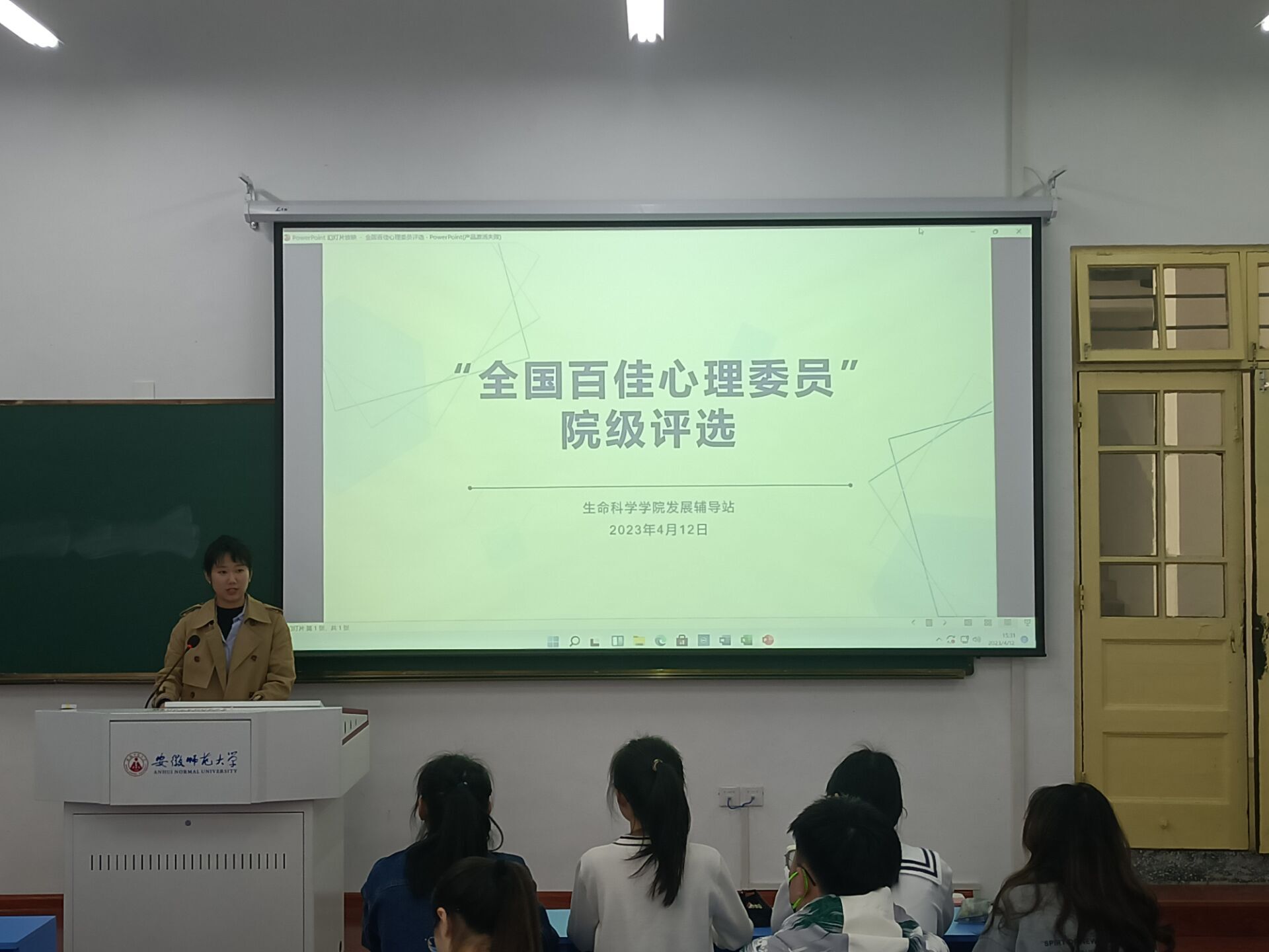为进一步加强班级心理委员的角色意识,提升心理委员工作素养,促进公司心理委员更好地发挥自助、互助、助人的专业能力,公司心理发展辅导站于4月12日下午3点在赭山校区教学楼,进行“全国百佳心理委员”院级评选。