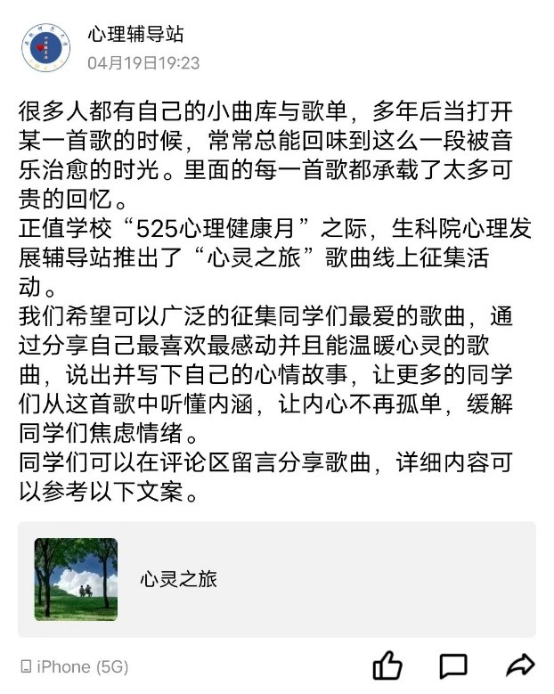 【心灵之旅”线上歌曲征集活动】